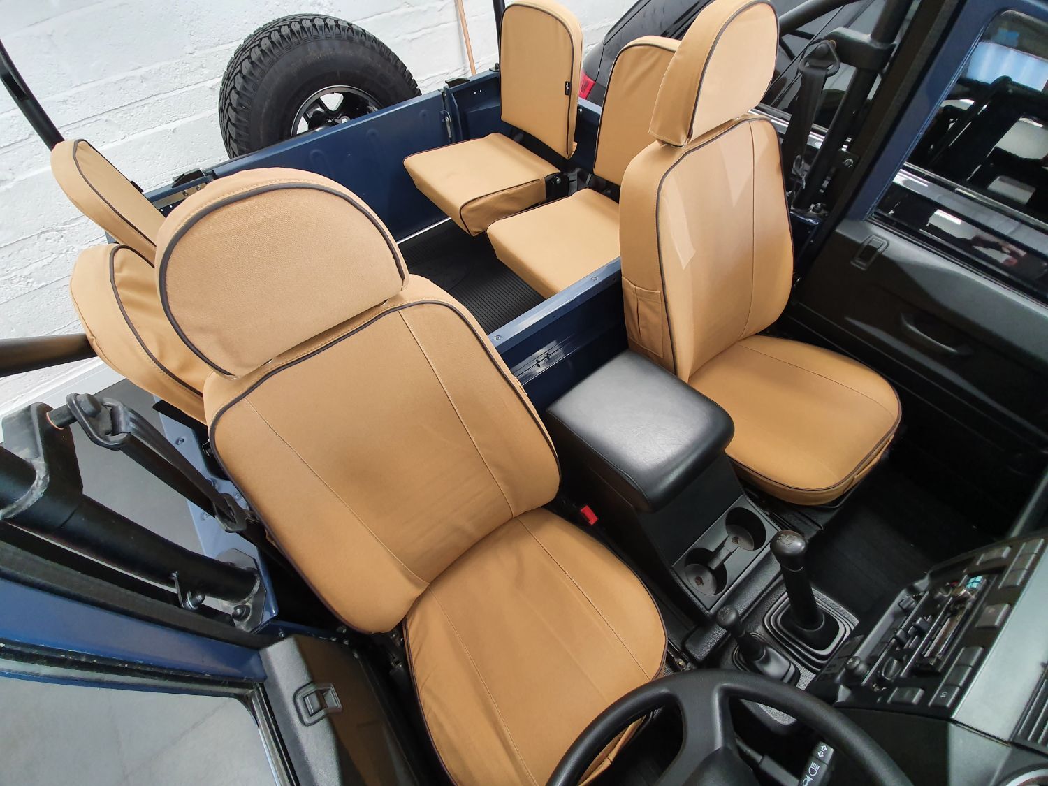 Absolutely stunning North American specification (NAS) Defender 90 pick up in Tamar Blue with 'Exmoor' sand denim twill interior.