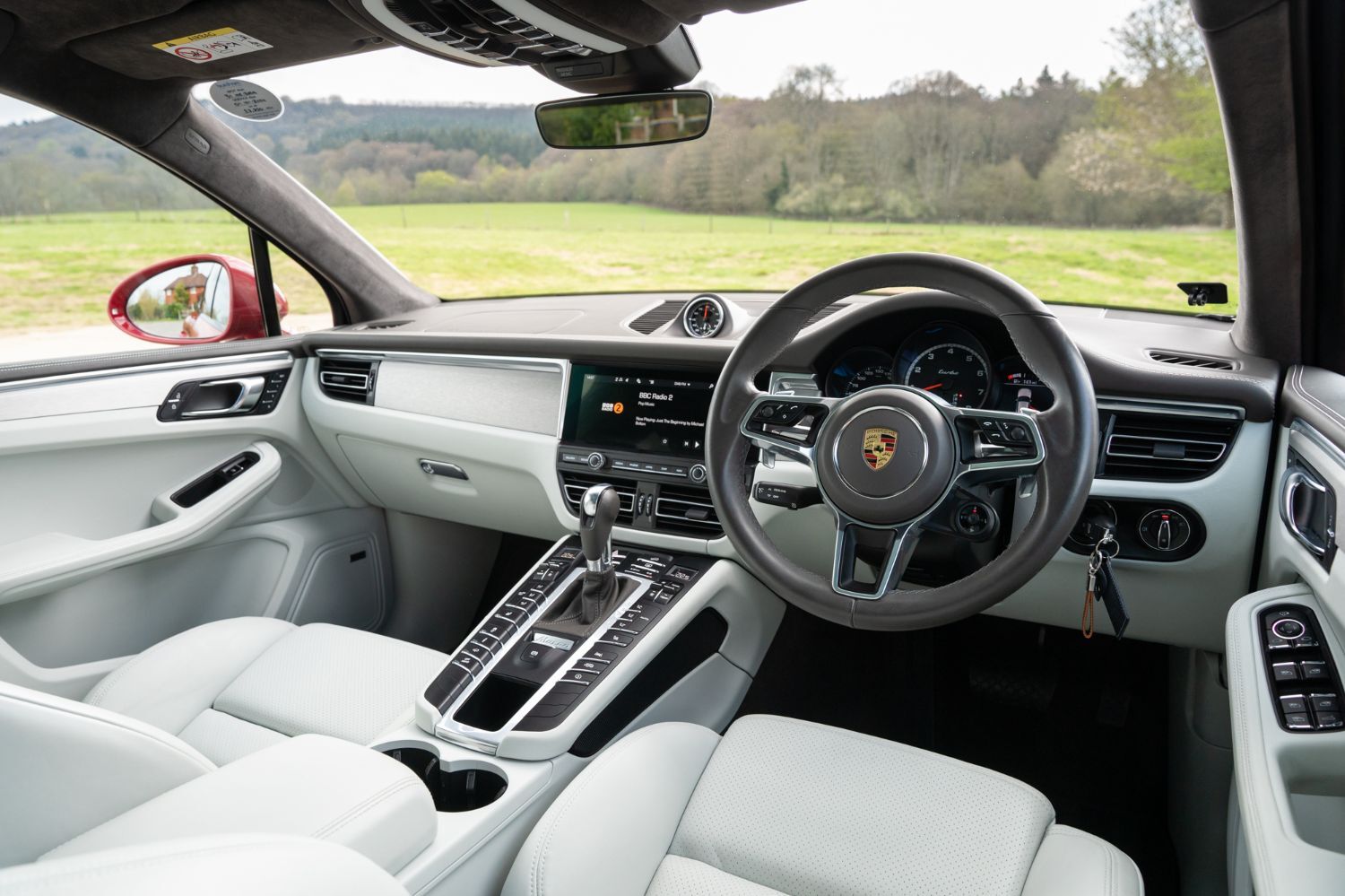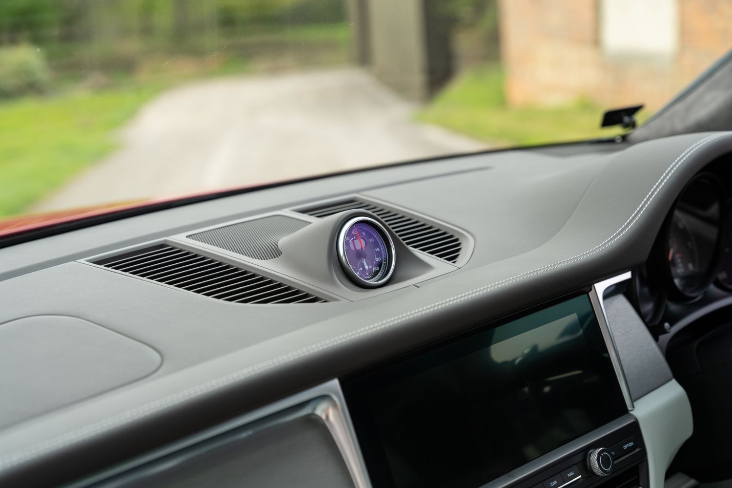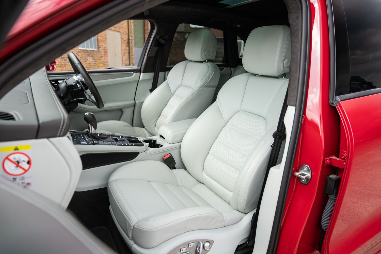 Absolutely stunning and one of the final editions of the Macan Turbo. Finished in special order Carmine Red Special Gloss with contrasting Agate Grey / Pebble Grey full leather interior and with a full list of factory fitted options, as follows: Park Assist, Reverse Parking Camera / Porsche Surface Coated Brake / 21-Inch 911 Turbo Design Wheels / Panoramic roof system1 / Air suspension with self-levelling function and ride-height adjustment including Porsche Active Suspension Management (PASM) / Roof lining in Alcantara / Sport Chrono Package including mode switch / SportDesign sideskirts / Sideblades painted in exterior colour / Privacy glass / "PORSCHE" logo painted in black and model designation painted in black (high gloss) / SportDesign exterior mirrors / Porsche Crest on headrests (front and outer rear seats) / Rear apron mid-section painted / Seat heating (front) / Roof rails in aluminium, painted in black (high-gloss) / Side window trims in black (high-gloss) / Wheel centres with full-colour Porsche Crest / Agate Grey / Pebble Grey two-tone leather interior / Carmine Red special gloss / Sports exhaust system in black