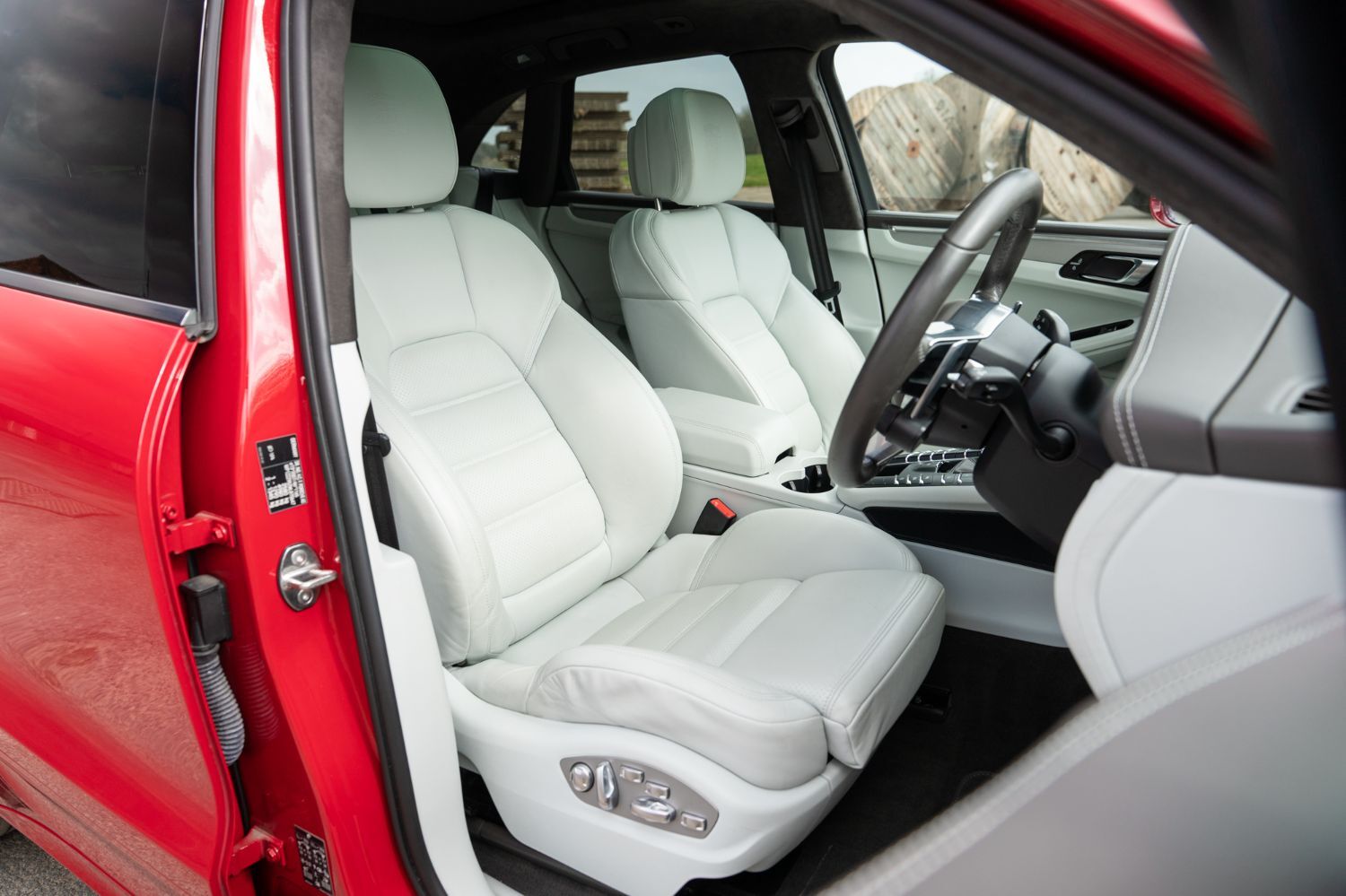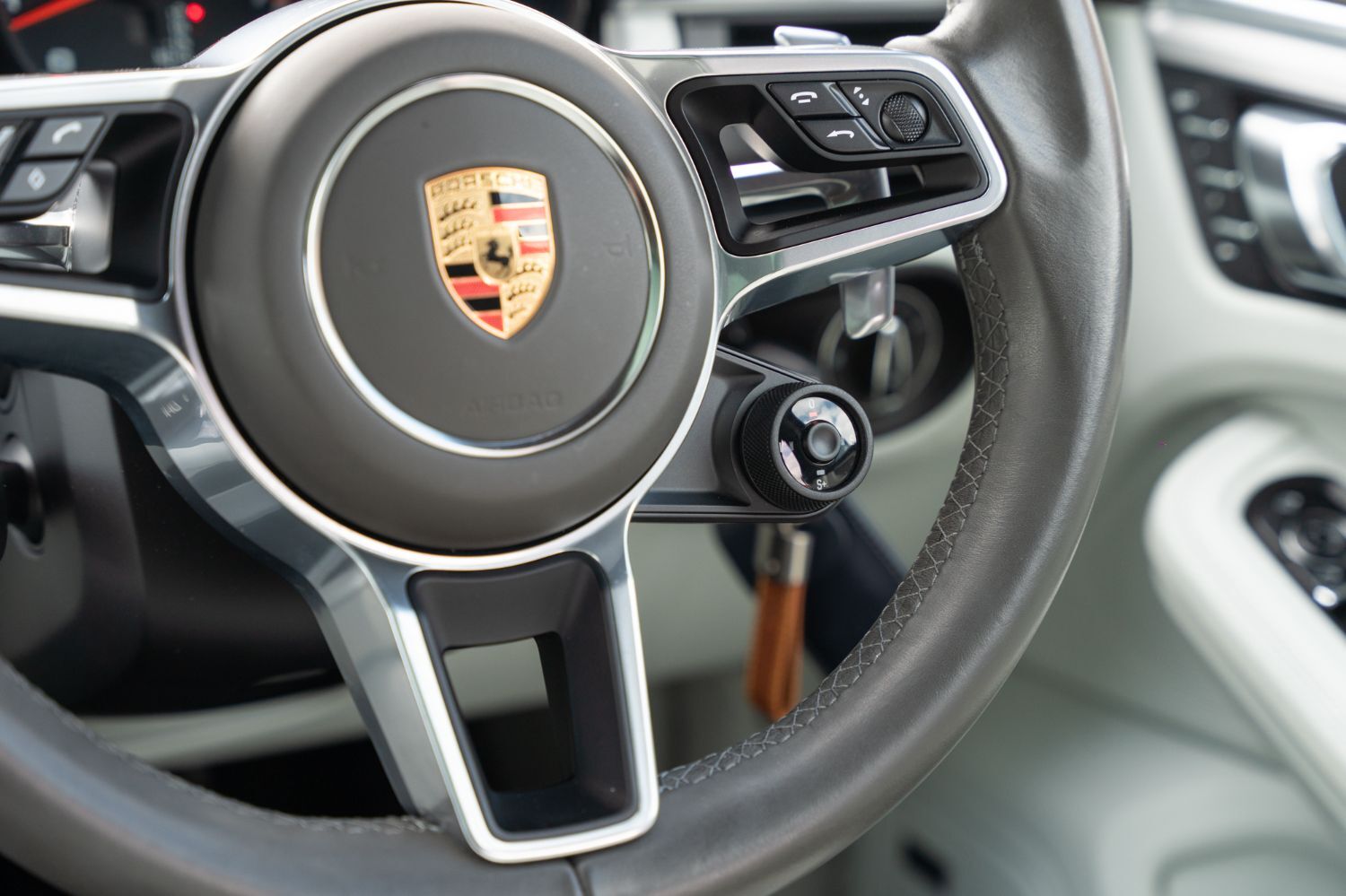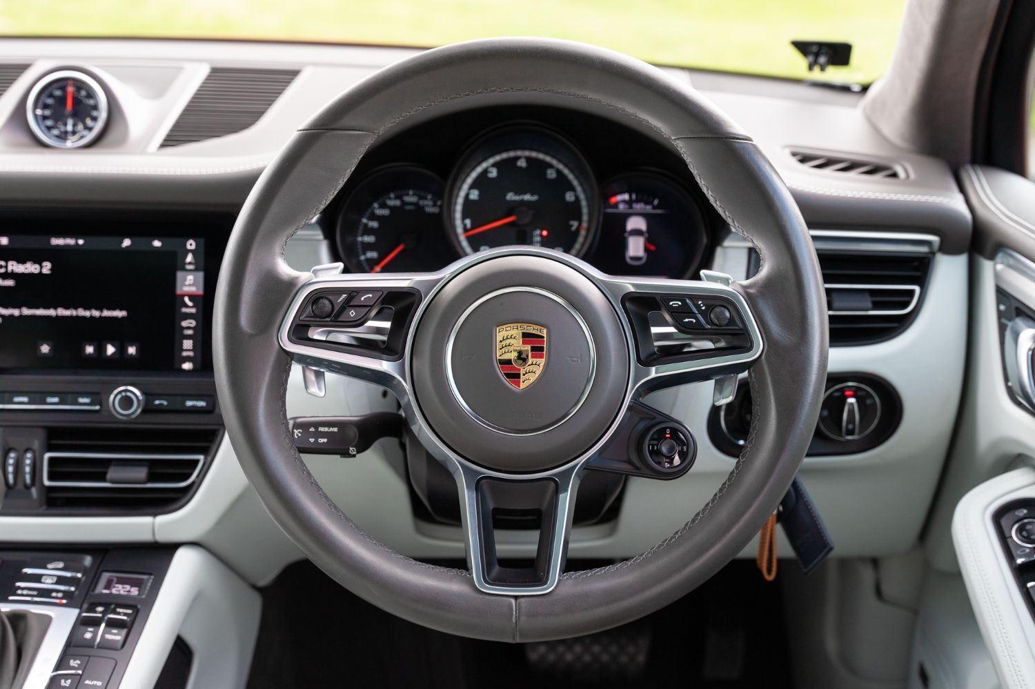 Absolutely stunning and one of the final editions of the Macan Turbo. Finished in special order Carmine Red Special Gloss with contrasting Agate Grey / Pebble Grey full leather interior and with a full list of factory fitted options, as follows: Park Assist, Reverse Parking Camera / Porsche Surface Coated Brake / 21-Inch 911 Turbo Design Wheels / Panoramic roof system1 / Air suspension with self-levelling function and ride-height adjustment including Porsche Active Suspension Management (PASM) / Roof lining in Alcantara / Sport Chrono Package including mode switch / SportDesign sideskirts / Sideblades painted in exterior colour / Privacy glass / "PORSCHE" logo painted in black and model designation painted in black (high gloss) / SportDesign exterior mirrors / Porsche Crest on headrests (front and outer rear seats) / Rear apron mid-section painted / Seat heating (front) / Roof rails in aluminium, painted in black (high-gloss) / Side window trims in black (high-gloss) / Wheel centres with full-colour Porsche Crest / Agate Grey / Pebble Grey two-tone leather interior / Carmine Red special gloss / Sports exhaust system in black