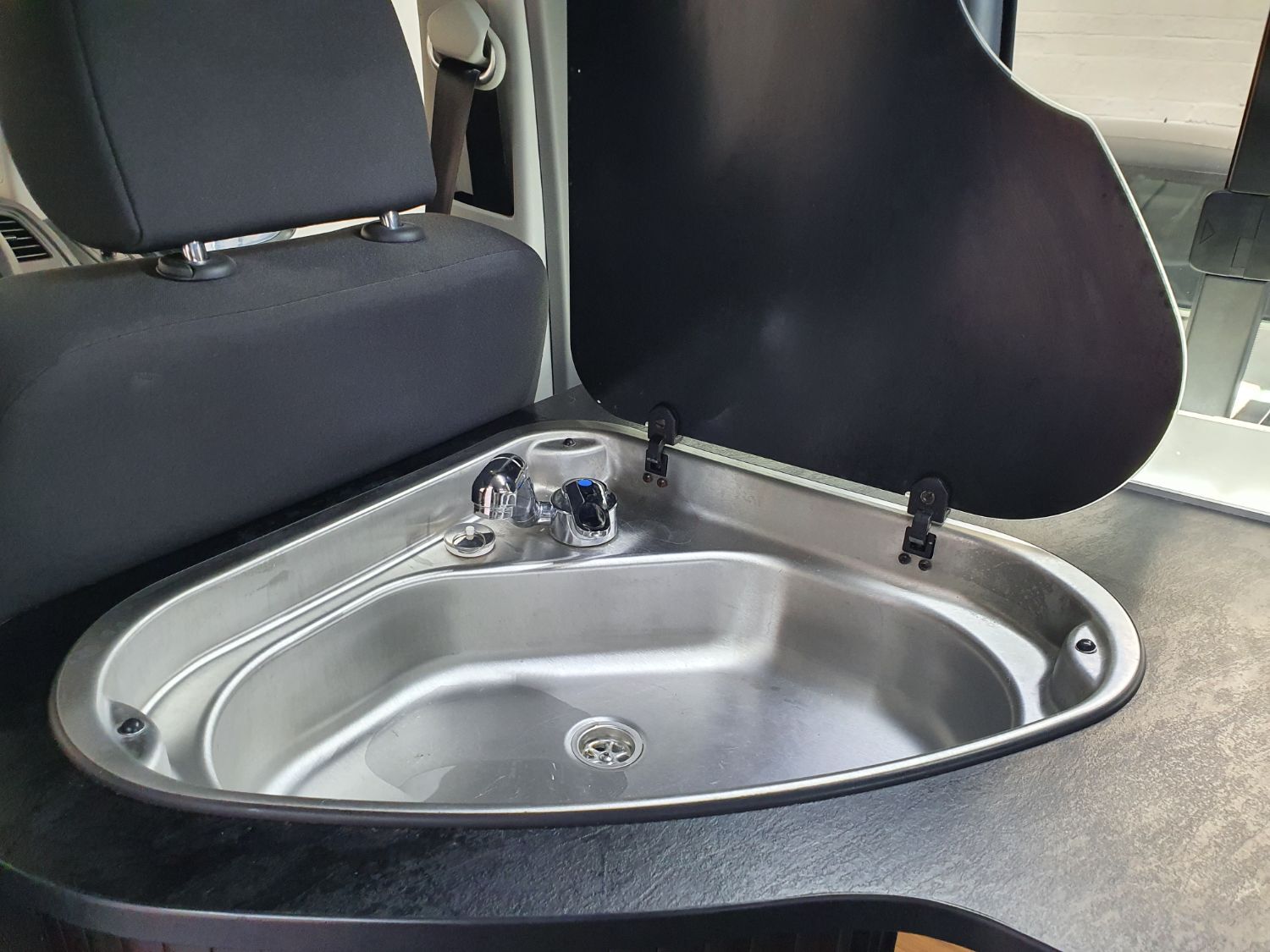 The van itself has cruise control, air con, DAB radio, bluetooth phone and music streaming, front / rear parking sensors, remote central locking, rear tailgate and sport design bumpers. There are 5 seats in all with 3 rear belts. The passenger seat swivels around to form part of the living space.